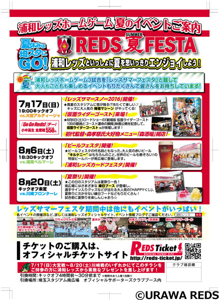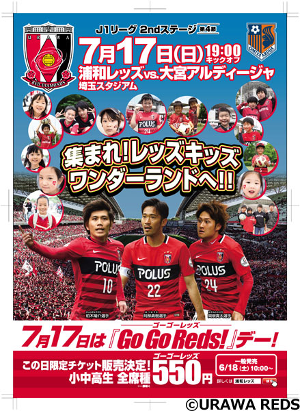 夏休み直前の7月17日(日)。明治安田生命J1セカンドステージ第4節、埼玉スタジアム2002で行われる大宮アルディージャ戦、「さいたまダービー」で実施される『Go Go Reds!デー』だ。