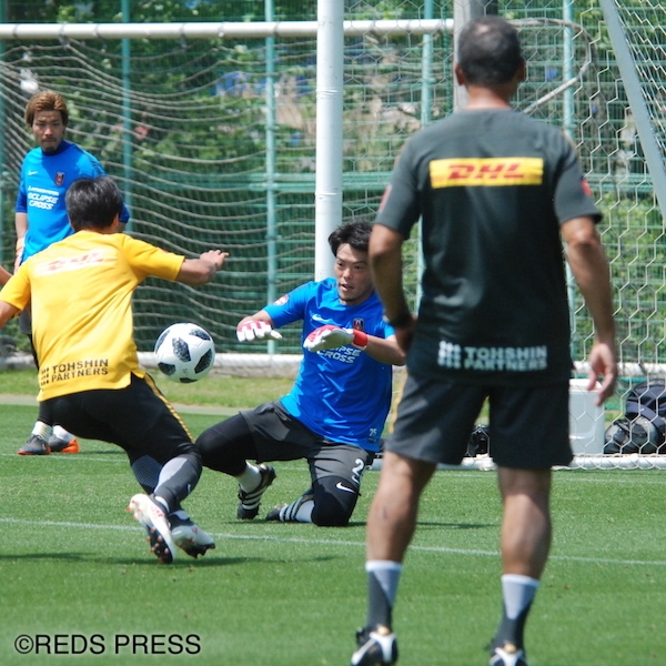 その言葉から数日、チーム練習の輪の中に榎本がいた。プレーの感覚には、当然ながら自信はある。完全合流を果たした今も、“正GK争い”という土俵には上がれていないと控えめに言う。「あと1週間くらいかな」とポツリ。それでも、きょうのような練習を繰り返す中で、本来の榎本哲也が戻ってくるはず。その日を焦らず、焦らさずに待ちたいものだ。ゴールマウスの前に立つ彼はやはり魅力的だ。