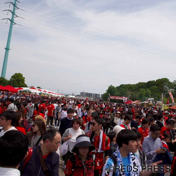 筆者もかつてレッズプレスの編集に従事していたこともあり試合日は埼玉スタジアムに足しげく通っていた。だからこそいつもと違う光景に驚いた。南広場はかつてみたことのない数の子どもたちであふれていた。