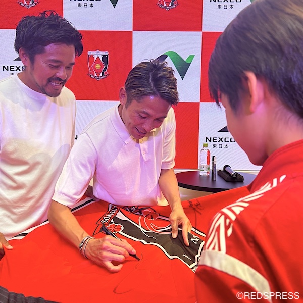 興梠さんは、浦和レッズOBの森脇良太さんと2人でトークショー&サイン会に臨み、イベントを盛り上げた。