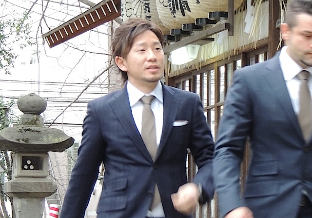 橋本光夫代表、再来日したミハイロ・ペトロヴィッチ監督、コーチ、選手、チームスタッフ、クラブスタッフと50名近いクラブ関係者がそろった。静まり返った調神社に祝詞奉上の声が響いた。