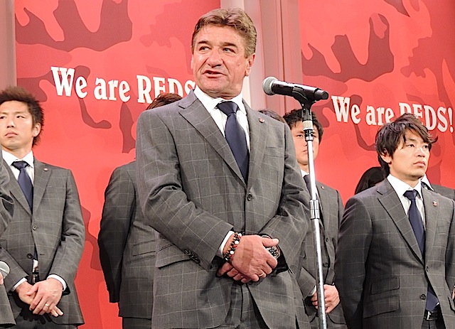 Jリーグはきょう、第5代Jリーグチェアマン就任や今季のJリーグの試合日程を発表したばかりだが、クラブもトップチーム(マルシオリシャルデス除く)、レディースチームが一堂に会すのはきょうが初となる。ミハイロ・ペトロヴィッチ監督3年目、そして昨季途中にレディースチームの監督に就任し、引き続き今季も指揮を執る吉田靖監督のシーズン開幕にむけた意気込みが聴かれ、集まったゲストから温かな拍手が送られた。