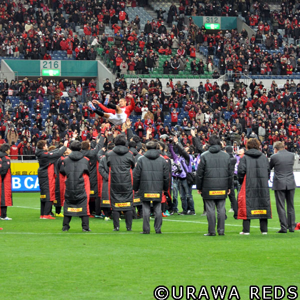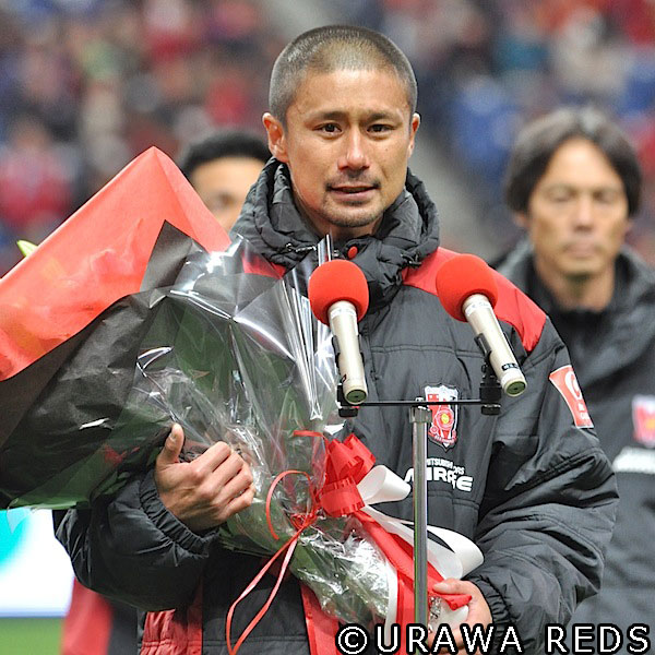 きょうは申し訳なかったです。でも、チームはこの敗戦を乗り越えて……(涙ぐむ)。また、強くなると信じています。サポーターのみんな、今までともに喜んでくれてありがとう。ともに苦しんでくれてありがとう。ともに泣いてくれてありがとう。ともに戦ってくれてありがとう。これからは違う場所、違う色のユニフォームを着て走り続けることになります。これからも、ともに走り続けて行きましょう。13年間、ありがとうございました。