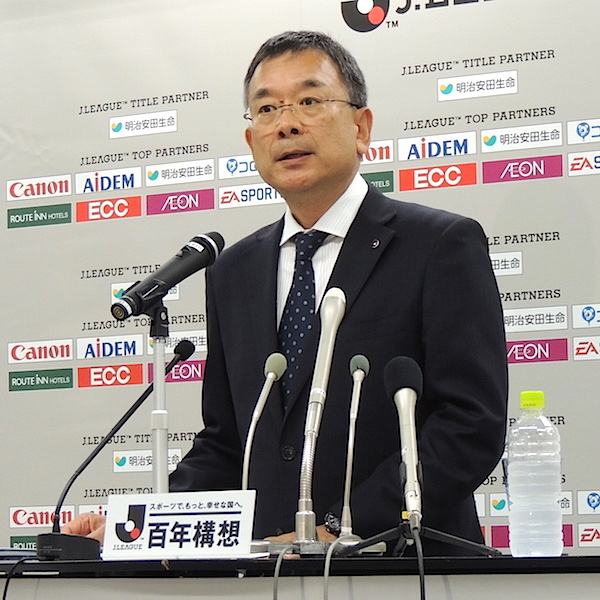 6月9日(木)、Jリーグは都内・JFAハウスで臨時理事会を開催し、終了後に村井満チェアマンは定例の記者会見に臨んだ。臨時理事会では、明治安田生命J2リーグに所属するロアッソ熊本の、「平成28年熊本地震」関連損失による財務状況悪化への対応方針を決議。そして、「日産自動車・三菱自動車工業の資本提携報道」に関して現時点でのリーグ規約・クラブライセンス交付規則の解釈を示し、浦和レッズの淵田敬三代表と共有したことを報告した。