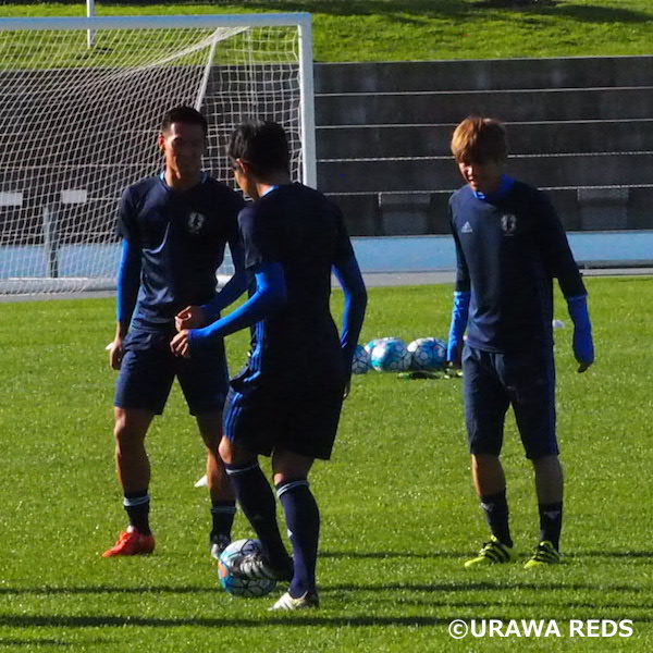 8日の練習は、メルボルン市内からトラム(市電)で20分ほどのところにあるレイクサイド・スタジアムで練習を行った。ここは2011年のアジアカップでも使用した練習会場だ。現地時間午後5時20分過ぎから始まった練習は、2グループに分かれて9対2のボール回し。西川周作、柏木陽介、槙野の浦和勢は同じグループとなり、ほかのメンバーは吉田麻也、丸山祐市、太田宏介、本田圭佑、大島僚太、山口蛍、香川真司、そしてコーチという顔ぶれだった。その後はイラク戦に出場したスタメンと、交代出場もしくはリザーブの2組に分かれてのランニングやストレッチなどの回復メニューを消化。最後はスタメン組がフットバレー、リザーブ組が5対5+フリーマン1人のミニゲームで全体練習は終了した。