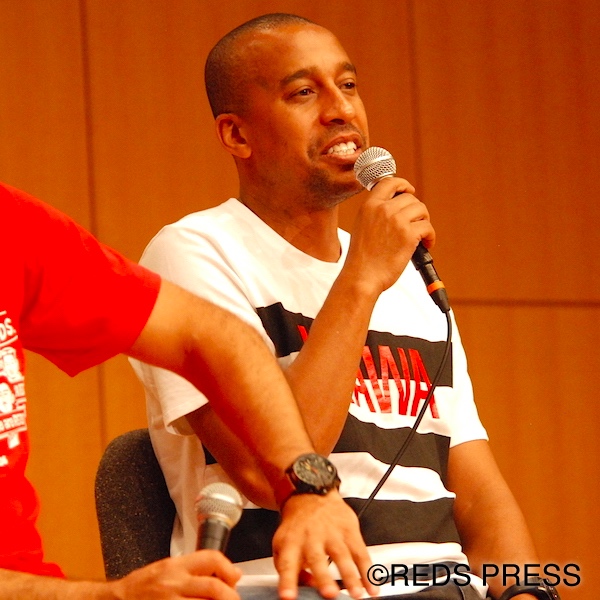 今回、あす7月17日(祝・月)に「鈴木啓太引退試合」に参加するマリッチ、ワシントン、ネネ、ロブソン ポンテ、三都主アレサンドロの5名が、オフィシャルショップ・レッドボルテージでのサイン会に続き、386名のサポーターの前に立ち、大いに沸かせた。