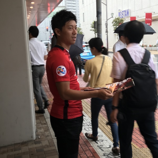 浦和駅などで武藤雄樹、宇賀神友弥とスタッフ、サポーターがチラシ配布。逆転ベスト4進出へ総力結集モード!!
