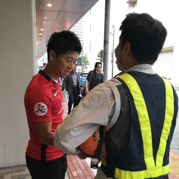 クラブによれば、通勤時間帯にもかかわらず、多くの方が足を止め、励ましの言葉があったそうだ。