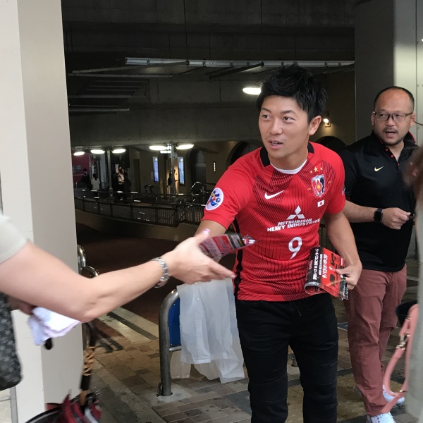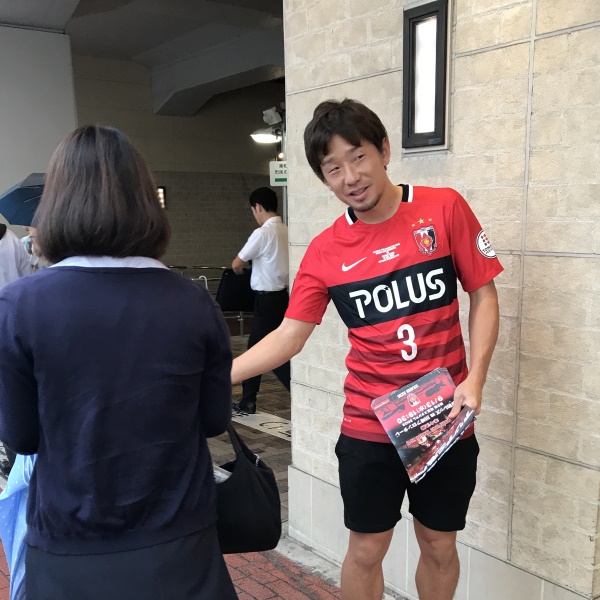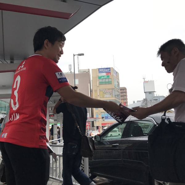 通勤時の忙しい時間帯だったがちゃんと一人ひとりの目を見て配ったので、あらためてレッズのパワーを知ることができた。みなさん、最高の雰囲気をスタジアムで作ってくださると信じている。