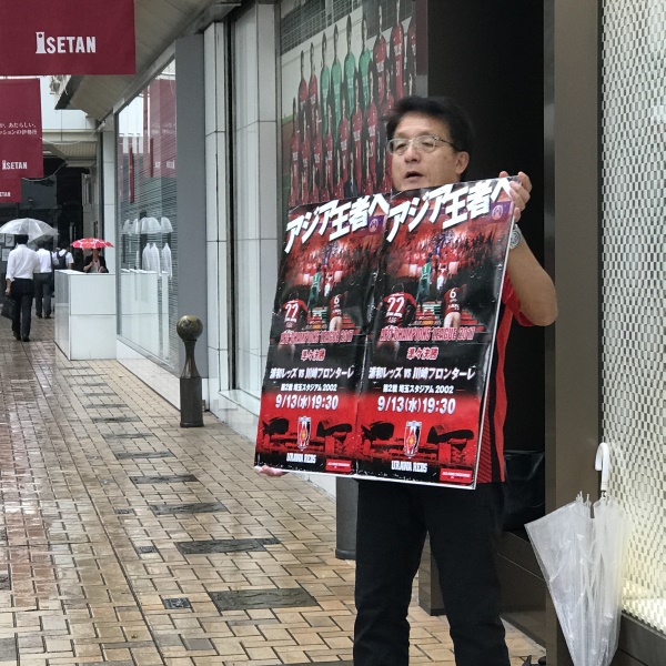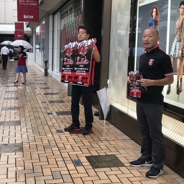 ACLベスト4逆転進出のために、「ひとりでも多くのファン・サポーターの後押しを」ときょう12日(火)朝、JR浦和駅を含めた4つの駅で試合告知が書かれたチラシを約3000枚、配布。