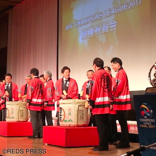 12月20日(水)、さいたま市内のホテルで、浦和レッズはオフィシャルパートナーや行政、地元メディア、チーム活動において尽力した関係者を招き、「AFCチャンピオンズリーグ2017優勝祝賀会」を開いた。