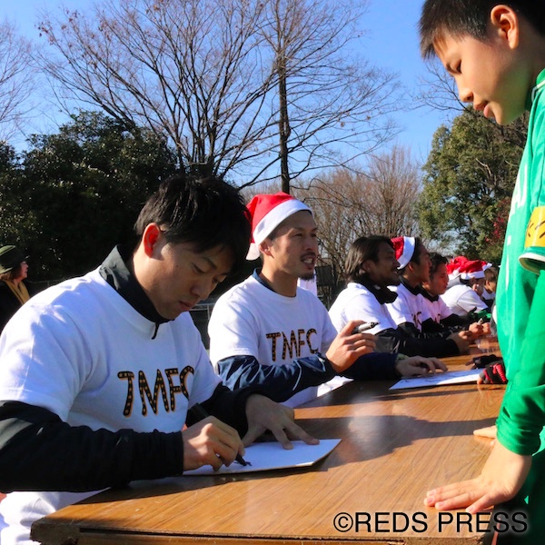 12月23日(土・祝)、多摩市立陸上競技場にて株式会社TMFC主催の「クリスマスチャリティーサッカー教室2017 in多摩市 REMEMBER 3.11 SENDAI」が開催され、浦和の武藤雄樹、元浦和の永井雄一郎、坪井慶介、加藤順大ら21名の現役Jリーガー、コーチが参加した。