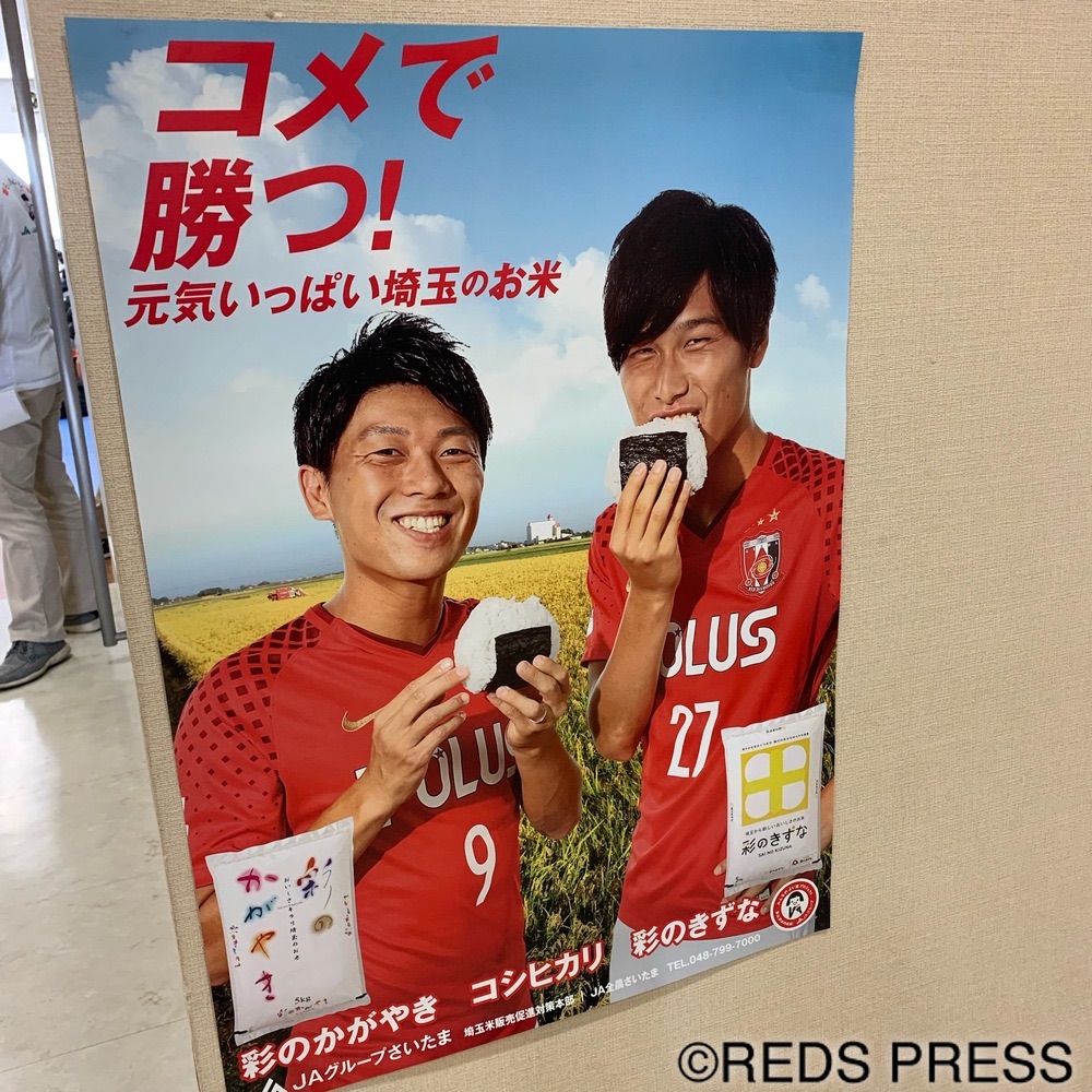 今年のポスターは「コメで勝つ!〜元気いっぱい埼玉のお米〜」。武藤、橋岡両選手の笑顔が光っている。