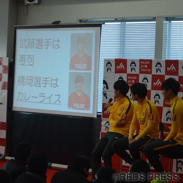 今回で17回目となったJAライススポーツセミナーがレッズランドで行われ、浦和レッズからは武藤雄樹、山田直輝、橋岡大樹の3選手が参加した。