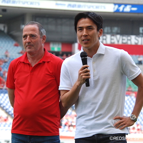 REDSニュース|ウーベ・バイン&長谷部誠 両OBがピッチ上で挨拶|レッズプレス!!