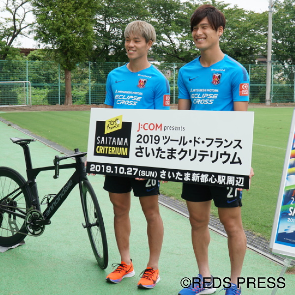 浦和レッズは9月14日(日)、10月27日(日)にさいたま新都心駅周辺で行われる「2019ツール・ド・フランスさいたまクリテリウム」と相互プロモーションをはじめとした大会PR活動を実施するにともない、大会アンバサダーである浦和レッズの一員として、橋岡大樹と荻原拓也が取材に応じた。