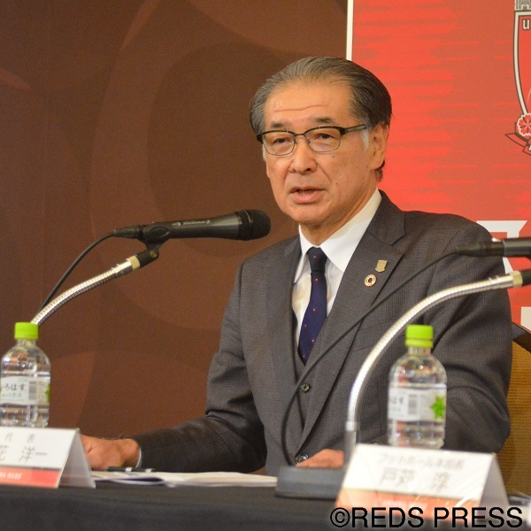 2020シーズン、浦和レッズ新強化体制記者会見がさいたま市内の会場で行われた。立花洋一代表をはじめ、土田尚史スポーツダイレクター、西野努テクニカルダイレクターが登壇。経営面から強化部門を見る新設部署である『フットボール本部』の戸苅淳本部長も登壇した。