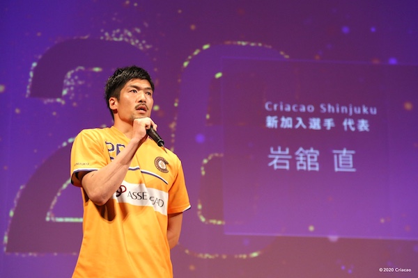 岩舘は「自分が『Criacao Shinjuku』に加入するまでの想い。レッズとの契約が満了になると決まってから、これからのキャリアについて、いろいろと考えさせられた。現役でプレーを続けたいという想いと共に、魅力あるサッカークラブづくりに携りたいという想いが強くなった。日本の中心である新宿にサッカークラブができることの社会的な影響力や、勝ち負けだけにとらわれず、勝った先に目指す社会があるという理念の話などに、自分の気持ちが期待で膨らむのを感じ、このクラブの成長していく過程に自分も携わりたいと思った。今年1年間、全力で頑張りたい」と話した。
