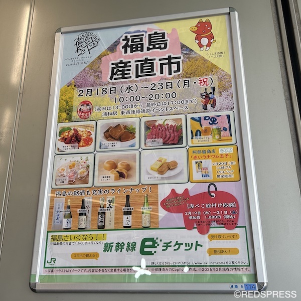 きのう18日(水)から、JR浦和駅東西連絡通路イベントスペースでは『福島産直市』が開かれている。福島県の新鮮な食材をはじめとする物販コーナーの充実はもちろんのこと、『赤べこ絵付け体験会』があったり、食・観光・文化を感じられる機会となっている。