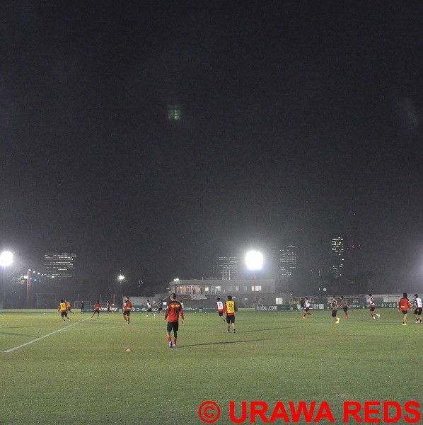 今にも泣き出しそうな空の下、午後4時からトレーニングはスタート。クラブハウス施設の照明がともり、選手たちは元気よくピッチに姿を現した。そして、ゆっくりランニングをした後、4人1組のボール回しを行った。