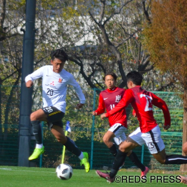 トレーニングマッチの意義は、試合感覚や試合体力の維持と、選手個々のアピールにある。そのなか、柴戸海がセンターバックで90分、プレー。不慣れなポジションに加えて、いつもと違うメンバーと組むなか、柴戸は指示の声で統制。複数のポジションをこなせることを印象づけた。