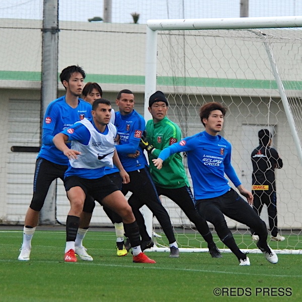 興梠慎三の言葉の裏には、きょう2月5日(火)、沖縄・金武町での2次トレーニングキャンプ5日目の午後に迎えた11対11の紅白戦がある。「練習から気を引き締めなければ(興梠)」と思わせてくれたのは、チームメートだ。「きょうみたいなトレーニングは素晴らしい」と興梠は言った。連日の2部練習。疲労が蓄積された状態とはいえ、きょうの紅白戦には、興梠らAチームに大きな刺激を与えるBチームの躍動するプレーがあった。