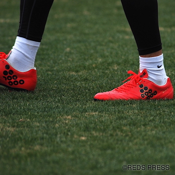 きょうは非公開練習であったが、報道陣に公開された時間帯でも、柏木は新しい相棒である同社のスパイク『DELSALMAー4 LE』を着用し、ボールの感触を確かめていた。中でもセットプレーでは、ますます柏木のアシストや得点に期待が集まる。