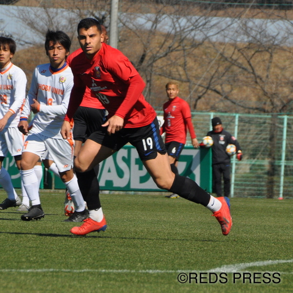 18日(月)、浦和レッズは大原サッカー場で午前11時から尚美学園大学とトレーニングマッチ(45分×2本)を行った。・・・・・・