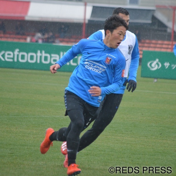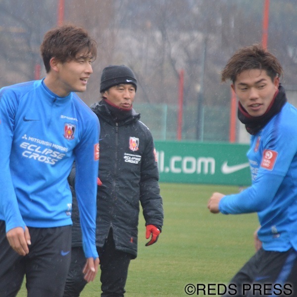 浦和レッズはきょう3日(日)、大原サッカー場で午前10時から全体練習を行った。大画面には0−2のスコア。ブーイング渦巻くなか、終わったホーム開幕戦の北海道コンサドーレ札幌戦。敗戦の涙雨か、冷たい雨が降る、きょうのトレーニングとなった。