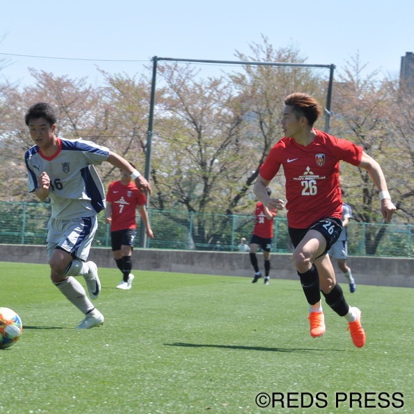 その後、左サイドの荻原拓也がキレのあるドリブルでガンガンと持ち上がり好機を作っていく。例えボールを失っても、素早い攻守の切り替えから相手にプレッシャーをかけた。