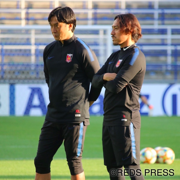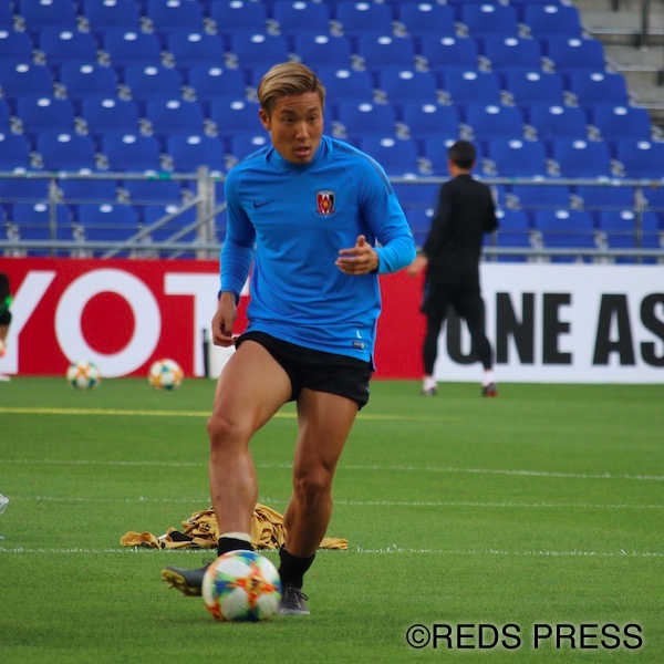 浦和レッズは6月25日(火)、18時から蔚山文殊スタジアムで試合前日の公式練習を実施。通常通り冒頭15分の公開として、ウォーミングアップやパス交換などのメニューを行った。その後、規定通りの1時間で練習を切り上げたチームは、練習後に取材へ応じた。