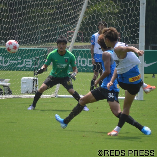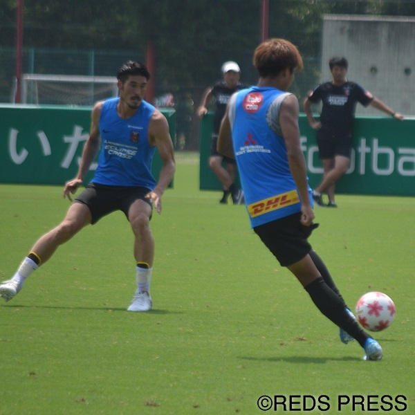札幌戦先発組は室内調整。控え組などは灼熱のピッチで約1時間20分、メニューを消化した。