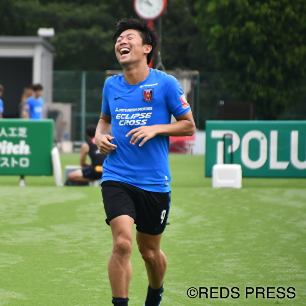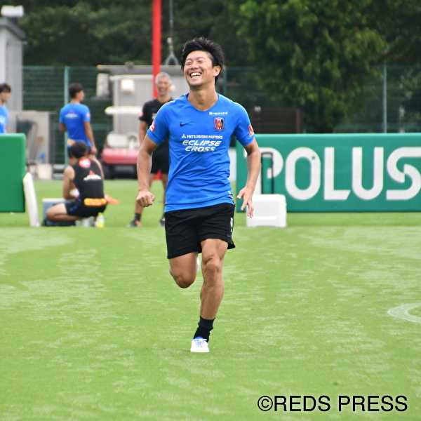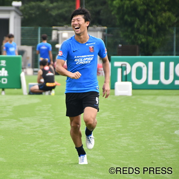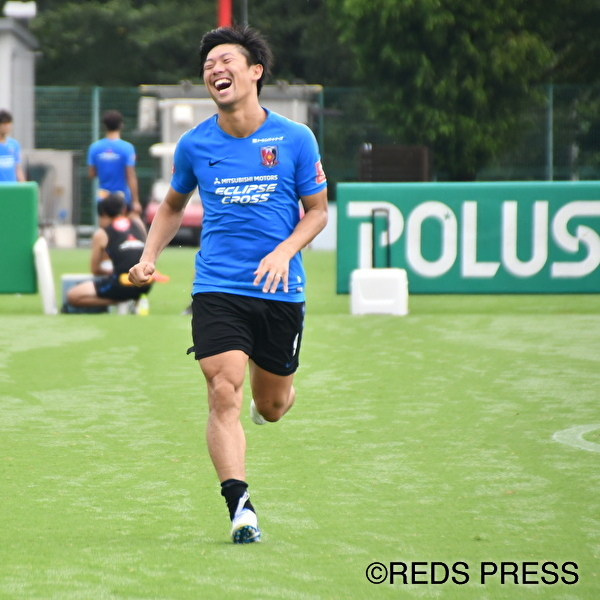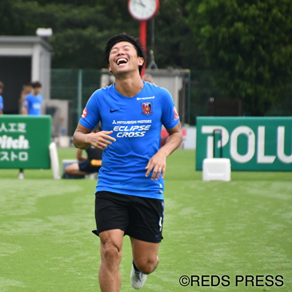 非公開練習終了後のワンシーン。武藤雄樹選手の笑顔でのダッシュ。