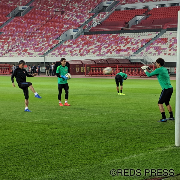 浦和レッズは22日、現地時間18時(日本時間19時)からACL準決勝第2戦・広州恒大戦前日の公式練習に臨んだ。いつものとおり、冒頭15分のみの公開で、規定通り1時間程度実施した。