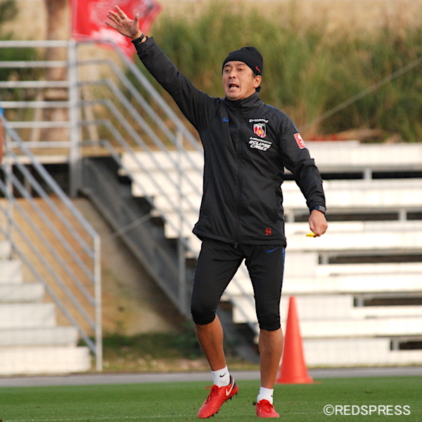 15時30分から金武町フットボールセンターで行われた午後練習は、戦術中心のメニューとなった。フィジカル要素が強かったのは、冒頭で行われた3分×3本のボール回しのみ。以降のパス練習から、どのように人が動いてボールを前に進めていくか。コンビネーションを重視した内容になった。・・・・・・