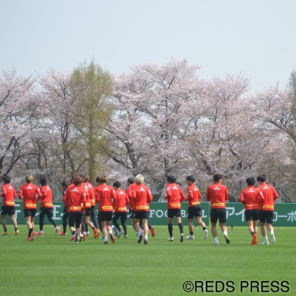 (佐藤亮太) 背番号1 西川周作A代表から合流。桜のもと、周作スマイルが光る