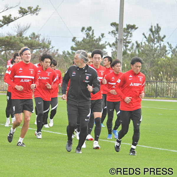 午前とは打って変わり、厚い雲に覆われた金武フットボールセンター。午後練習は16時からスタートし、約80分間、行われた。・・・・・・