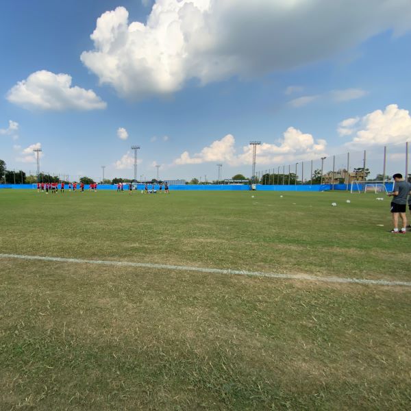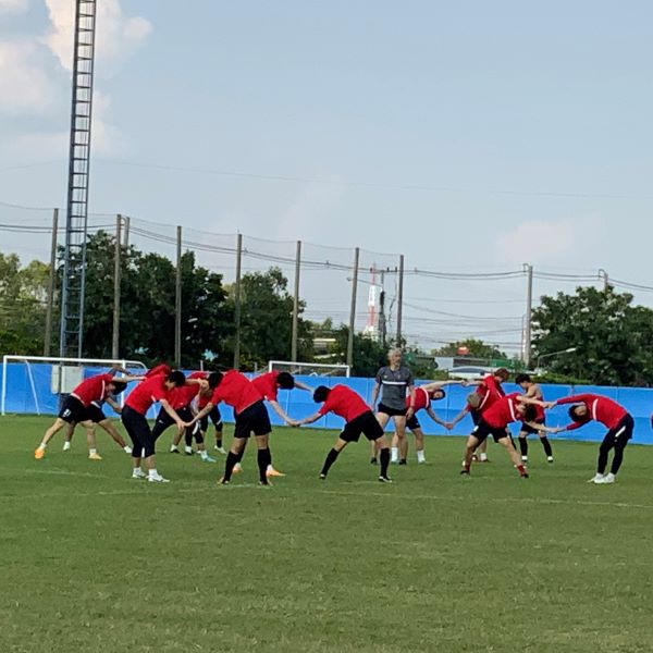この日の開始予定時刻は16時。これまでで最も開始時刻が早く、まだ日も高く猛暑の中での練習実施。もうひとつの練習場の状態がかなり悪化しており、芝の状態が悪いグランドで涼しい時間を選択するか、気温が高い時間帯ながらより状態がましな場所を選択するかの二択だったという。