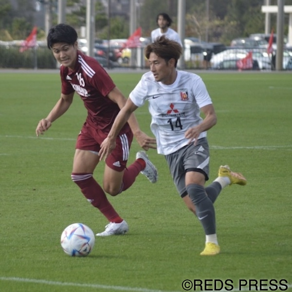 4―0で終わった2本目で目を引いたのが浦和レッズユース昇格組ルーキー堀内陽太。