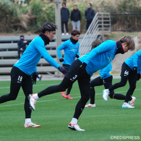 午後は、セットプレーなど詳細を確認1月24日(水)の午後練習は、15分間のコアトレーニングと、グラウンドに出て「鳥かご」などでボールに触れたあと、戦術を徹底確認。いくつかのポジションで、選手の入れ替えがある中、・・・・・・