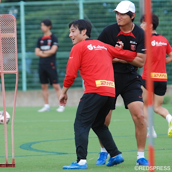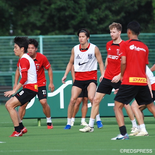 宇賀神友弥が思わず、SNSで「この暑さでサッカーってしていいの?」と、顔を真っ赤に沸騰した顔文字と「笑」の文字で思いを表現したが、16時過ぎから始まった午後練習はピークが過ぎたようだった。