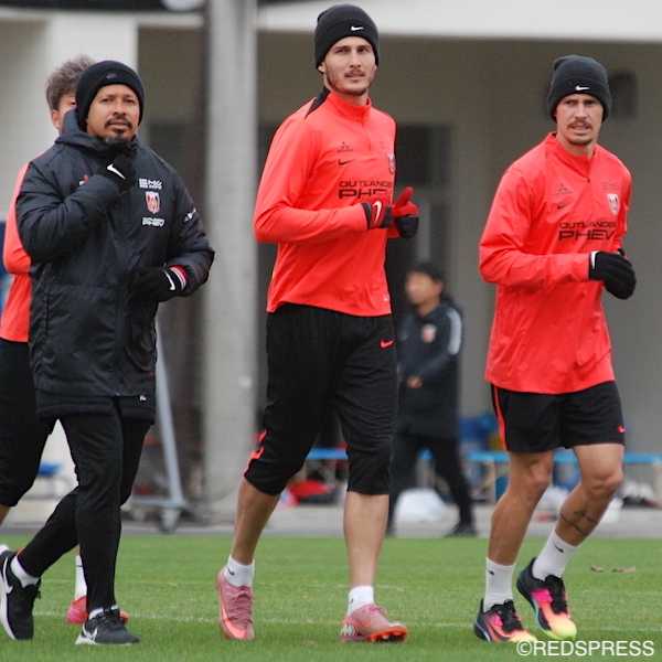 1月21日(水)、きょうも沖縄・金武町は、あいにくの曇り空。強風と時折、細かい雨も降って、2週間前の到着日に感じたような寒い1日だった。ダニーロ ボザもマテウス サヴィオも、ニットキャップを被っての登場。『忍者』まで現れた。ハイパフォーマンスコーディネーターの・・・・・・