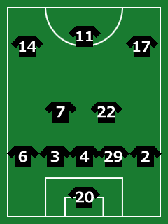 DF:2徳永悠平・29吉本一謙・4高橋秀人・3森重真人・6太田宏介