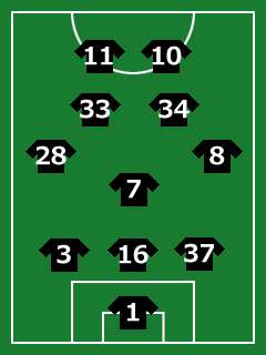 MF:8石毛秀樹・7本田拓也・28吉田豊・34水谷拓磨・33加賀美翔