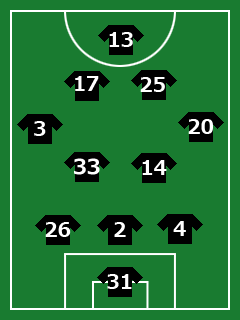 MF:14濱田武・33エステバン・20大崎淳矢・3アレックス・25佐々木一輝・17衛藤裕