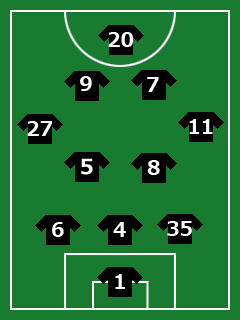 MF:8新井涼平・5マルキーニョスパラナ・11ジウシーニョ・27阿部翔平・7石原克哉・9阿部拓馬